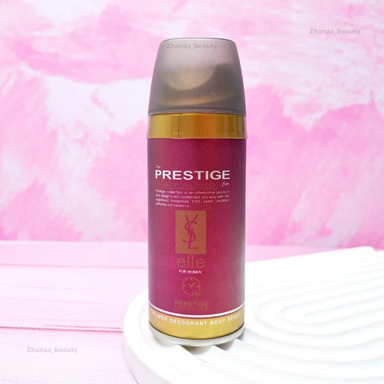اسپری بدن زنانه Elle Yves Saint Laurent پرستیژ ضد تعریق با رایحه معتدل گیاهان معطر مخصوص خانم هاست، ماندگاری بالایی دارد و از عرق کردن و بوی بد بدن جلوگیری می کند. این محصول خوشبو کننده بدن بوده و تا مدت طولانی در طول روز احساس تازگی و طراوت به فرد می دهد و برای استفاده روزانه مناسب است.