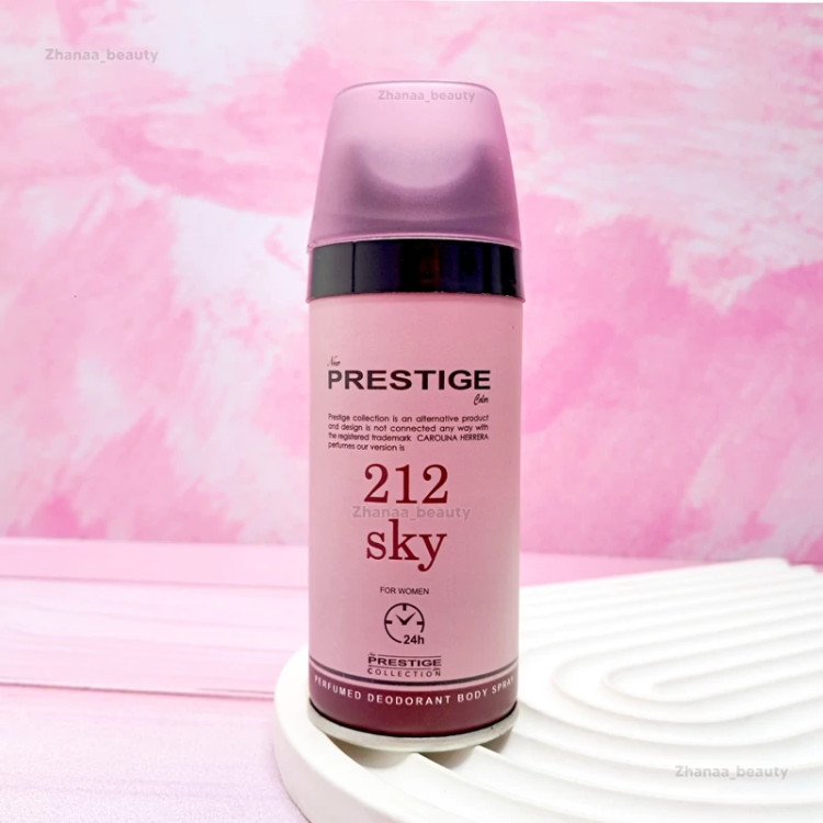 اسپری زنانه پرستیژ مدل 212 Sky حجم 150 میلی لیتر با الهام از رایحهای زنانه و مدرن طراحی شده است که حسی از طراوت و اعتماد به نفس را به شما هدیه میدهد. این محصول با ترکیب رایحههای خنک و چوبی، انتخابی بینظیر برای بانوان است که به دنبال ماندگاری و جذابیت در طول روز هستند.