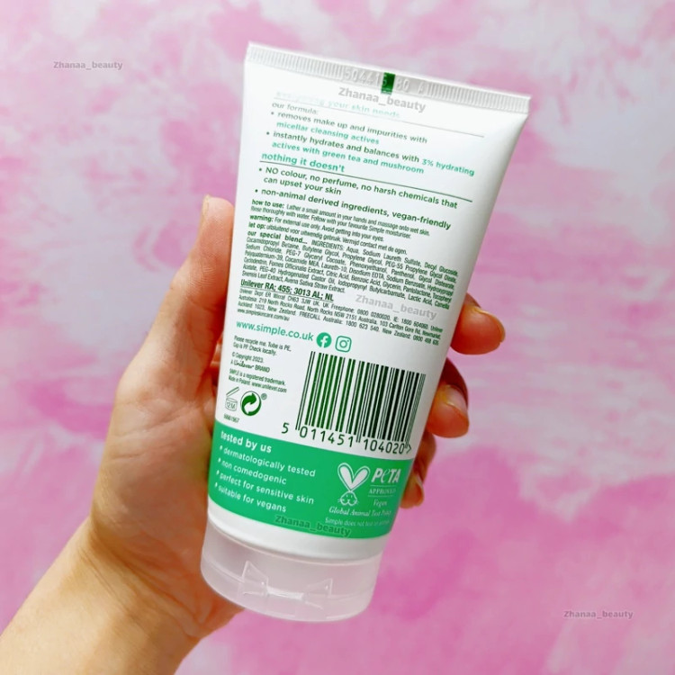 ژل شستشو چای سبز سیمپل با ترکیبات ویژه ای مانند پرو ویتامین B5، ویتامین E، عصاره چای سبز و بابونه فرموله شده است لذا در حین پاکسازی سبب تغذیه و رطوبت رسانی و جوانسازی پوست می شود. این شوینده برای انواع پوست مناسب است و از طرفی فرمولاسیون فوق العاده ایمن و ملایمی دارد و فاقد مواد شیمیایی خشن و مضر و رنگ یا عطر مصنوعی است.