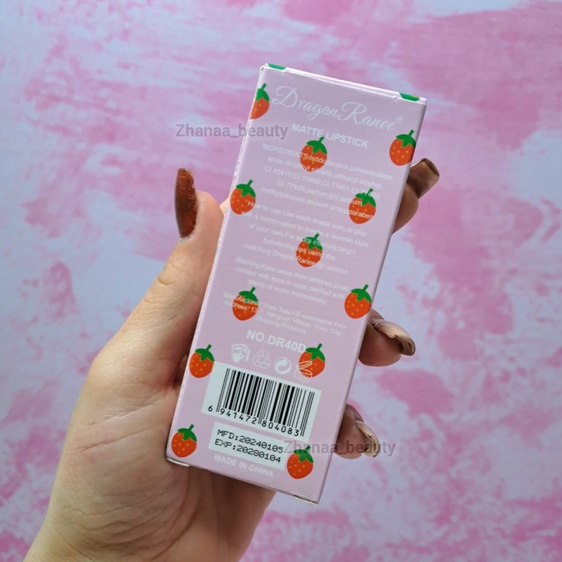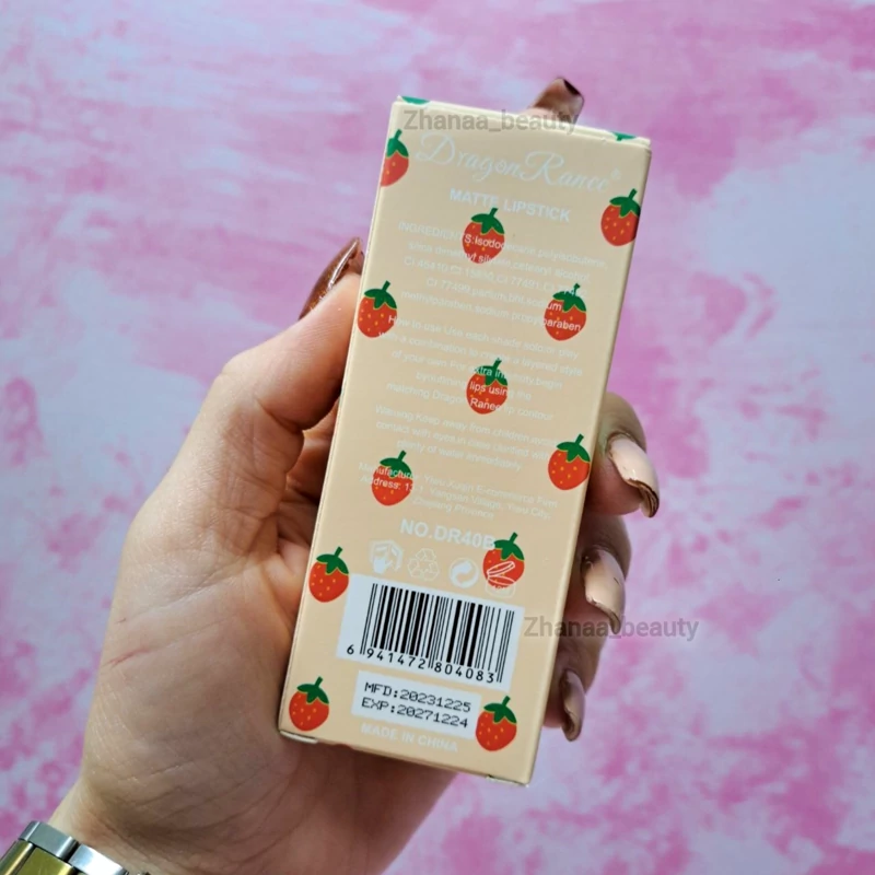 پک رژ مایع دراگون رانی از محصولات آرایش لب میباشد. شامل چهار طیف رنگی جذاب است. و هرپک شامل 3 عدد رژ لب مایع مات با رایحه توت فرنگی هستند. رژ مایع دراگون در طیف رنگهای جذاب این پک ها که رنگ های نوود و قرمز و گوشتی را شامل میشود. رنگ رژ ها بعد از خشک شدن روی لب کاملا مات میشوند. بافت و ساختار رژ مایع توت فرنگی کاملا گیاهی بوده و بدون سرب میباشد. به علت گیاهی بودن این محصول، بدون تست حیوانی است که از ویژگی های عالی بودن و باکیفیت بودن این محصول پرفروش است.