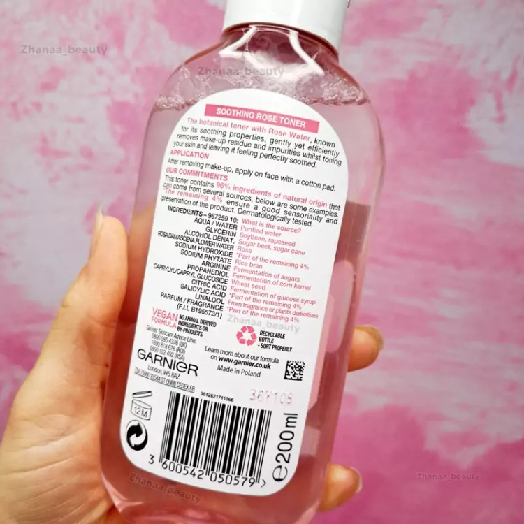 این یک محصول بی نظیر، با ترکیبات کاملا گیاهی (96 درصد گیاهی) است. این تونر علاوه بر پاکسازی پوست موجب آبرسانی و تقویت پوست صورت نیز میشود. عصاره گل رز موجود در این تونر صورت خاصیت متعادل سازی چربی پوست را دارد و از ایجاد آکنه و جوش جلوگیری میکند.گل رز دارای خواص ضد التهابی است و از این رو این تونر برای رفع التهابات پوستی بسیار ایدهآل است. تونر پاک کننده صورت گارنیر یک تیر و دو نشان است. با استفاده از این تونر پوست شما به خوبی پاکسازی و منافذ آن کوچک خواهد شد. در عین حال این تونر با مواد مغذی پوست طبیعی خود موجب تقویت پوست و جوانسازی آن میشود. از قدیم الایام از گلاب برای شفاف شدن پوست استفاده میشد. در این تونر صورت هم با بهره گیری از طب سنتی از عصاره رز استفاده شده است که به خوبی پوست شما را درخشان و لطیف میکند. گارنیه یک برند قدیمی و محبوب است که به صورت تخصصی به تولید محصولات بهداشتی مراقبتی پوست و مو میپردازد. محصولات گارنیه امروزه در سراسر دنیا محبوبیت ویژه ای یافته است.